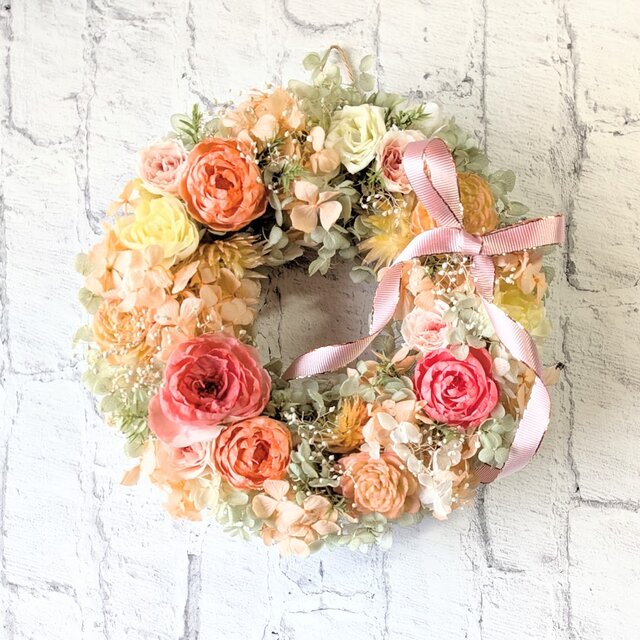ずっと咲き続けるプリザーブドフラワーのリースです。