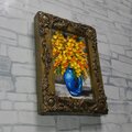 本作品の特筆すべきポイントは、油彩ならではの重厚感と立体感です。ホルベインの絵具を使用した厚塗りの技法により、一つひとつの花が生き生きとした存在感を持ち、幾重にも重ねられた黄色の層が光を受けて異なる表情を見せます。この技法によって、花の柔らかな質感がとても見事に表現されています。