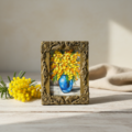「癒やしのミモザ」は、心をほぐすような鮮やかな黄色が広がる特別な油絵です。作品全体に広がるミモザの小さな花々は、春のやさしい日差しを感じさせ、見る人に温かさを届けてくれます。タイトル通り、心に癒しをもたらすエネルギーを持つこの作品は、日常の中の小さな幸せを思い出させてくれることでしょう。