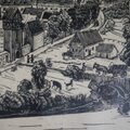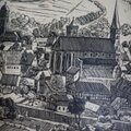 モノクロ木版画 ミュンナーシュタット 城壁旧市街 ドイツ