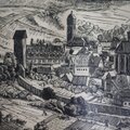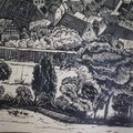 [モノクロ木版画 ミュンナーシュタット 城壁旧市街 ドイツ]