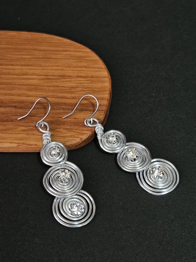 ワイヤーのお色は シルバー、輝くチャトンを中央に