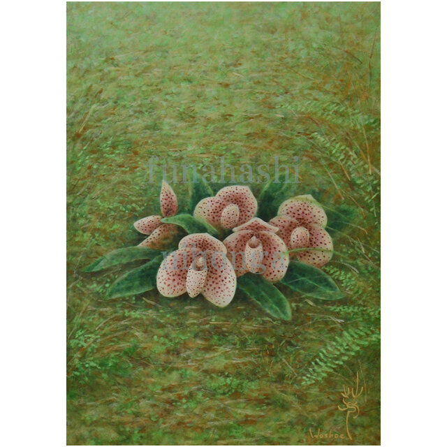 原画は日本画で描き日本蘭協会誌第43巻 (2000年12月刊) の表紙を飾らせていただきました。