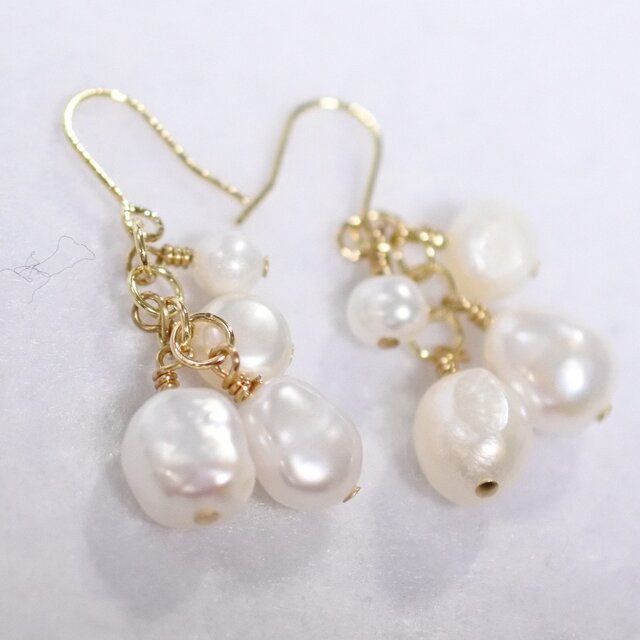 バロックパールを束ねて、小さくて豪華なシャンデリアピアスをお仕立てしました。