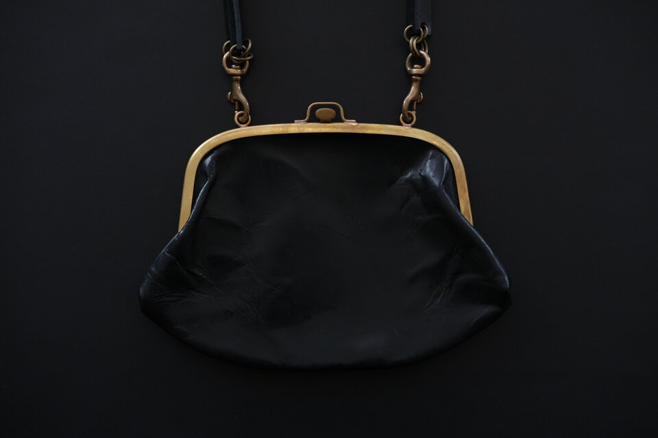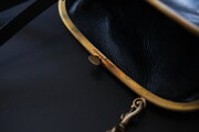 取り外し可能な牛革ストラップを外せば大きめのガマ口、ストラップを付ければ斜めがけ、肩かけといろいろな持ち方で楽しめます。