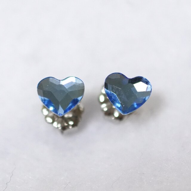 スワロフスキー・リトルハートの一粒ピアス(アクアマリン・チタンポスト)