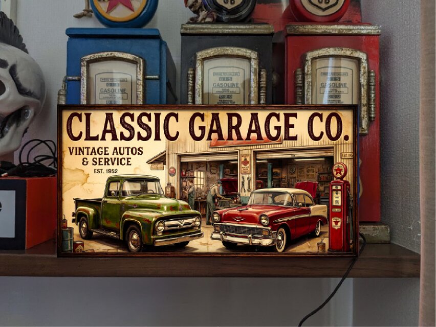 【オーダー無料 Lサイズ】アメリカン ガレージ アメ車 カーショップ 店舗 自宅 照明 ランプ 看板 置物 雑貨 ライトBOX