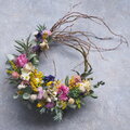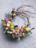 海からの優しい風に草花が揺れる風景を、華やかで躍動感あるリースに仕立てました。
