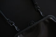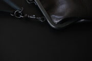 取り外し可能な牛革ストラップを外せば大きめのガマ口、ストラップを付ければ斜めがけ、肩かけといろいろな持ち方で楽しめます。