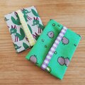 キツネ柄、キーウィ柄で子供用のミニポケットティッシュケースを作りました。
