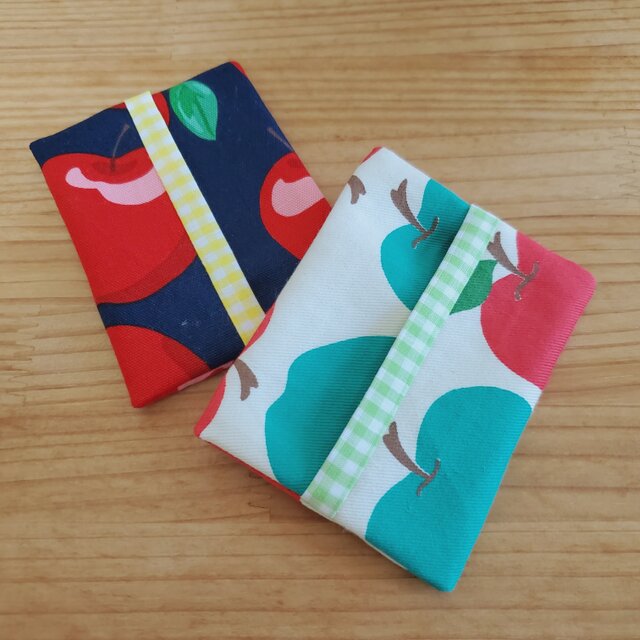 リンゴ柄で子供用のミニポケットティッシュケースを作りました。