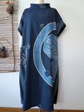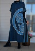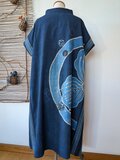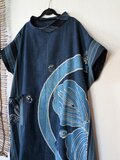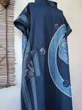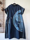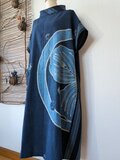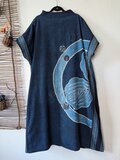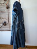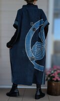古布リメイク 家紋+縞木綿のロールカラー AラインBigワンピース 襤褸 刺し子 古布 着物リメイク