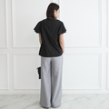 パンツにもスカートにも合わせやすくネック部分のギャザー、ふんわりフリル袖が上品に、女性らしさを出して美しく見せてくれます。