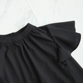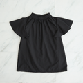 【洗濯できる】大人のフリル袖 シワになりにくいブラウス ブラック 0454BK