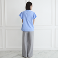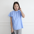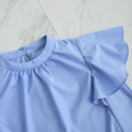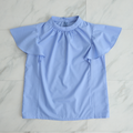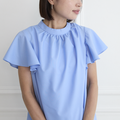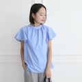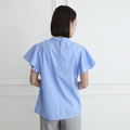 【洗濯できる】大人のフリル袖 シワになりにくいブラウス ライトブルー 0454L.BL