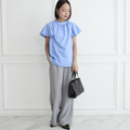 パンツにもスカートにも合わせやすくネック部分のギャザー、ふんわりフリル袖が上品に、女性らしさを出して美しく見せてくれます。