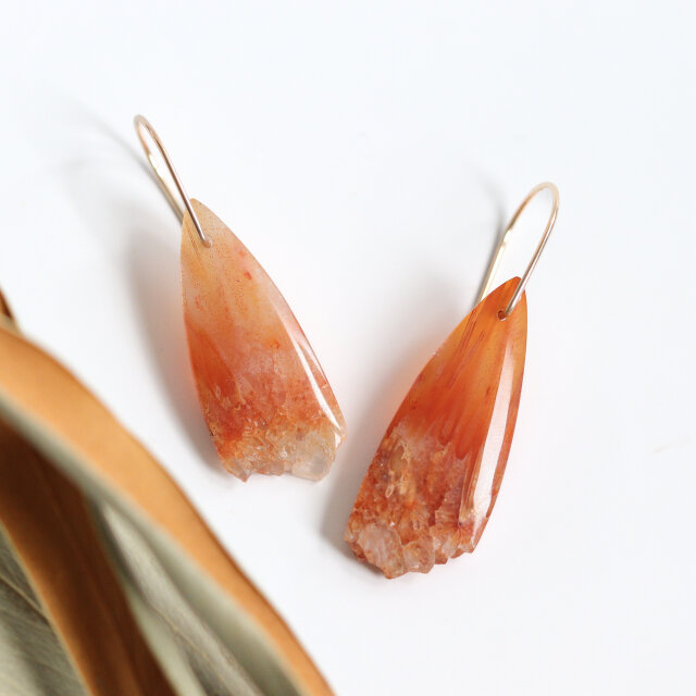 14kgf|天然石ピアス 一点もの|柔らかいオレンジのシュガーパームドゥルージー