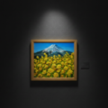 本作品の特筆すべきポイントは、油彩特有の重厚感と立体感が感じられるところです。厚塗りされた絵具により、一輪一輪の菜の花は生き生きとした存在感を持ち、光のあたり具合も変化させながらさまざまな表情を見せます。背景の富士山は澄み渡る青空の中、白雪をいただいた凛とした姿を映し出し、静寂を感じさせる美しさが際立ちます。この「動」の菜の花と「静」の富士山が互いに支え合い、日本の自然の魅力を一層引き立てています。