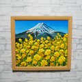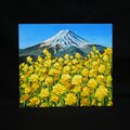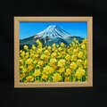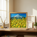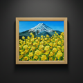 「富士を望む花園」は、鮮やかな黄色の菜の花とそびえ立つ富士山の見事なコントラストを表現した特別な油絵です。春の柔らかな陽光を浴び、輝く菜の花畑はまるで地上に降り注いだ光の結晶のように、見る人に温もりをもたらします。この作品は、日本の春の情景を豊かに描き出し、心に残る感動を与えてくれることでしょう。