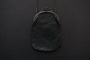 丸みを帯びた新型の口金フレームに、革本体は丸型のマチなしのデザイン。真鍮ロウ付けのチェーンと牛革のコンビのショルダー紐が付属します。
