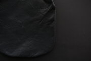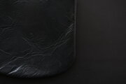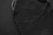 革は、作り手の高見澤さんのものづくりの特徴である、革屋さんからではなく猟師から直接仕入れるジビエ革。北海道十勝地方で捕られた蝦夷鹿の皮を、タンニンで鞣し、染料染めしています。鹿革らしい滑らかさと柔らかさがあります。こちらは染めや仕上げにより、艶が印象的な風合いです。