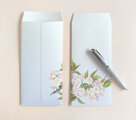 封筒は地色が下から薄紫→白のグラデーション、桜はオモテ面からウラ面にかけて柄が続いています。
