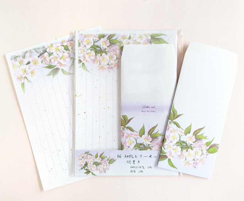 桜を描いた日本画をもとにB5サイズの縦書き和紙レターセットを作りました。
