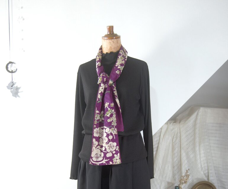 和布を愉しむストール*椿に梅 【sara-nari】着物リメイク