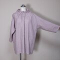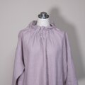 カラーリネン◆フラワーネックブラウス(七分袖)◆オールドモーブ◆フリーサイズ(中厚、リネン100%)