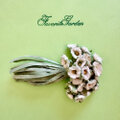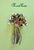 ホワイトの濃淡で染めて作ったビロードのフラワーたちをギッシリ束ねて作ったコサージュです。