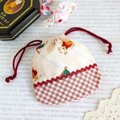 落ち着いたワインレッドのレースを使用した、上品なミニ巾着です。