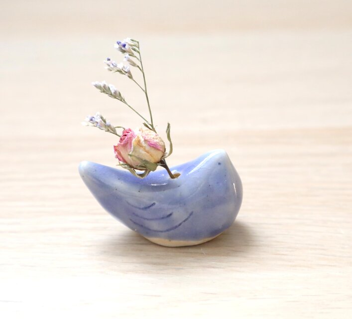 小鳥の花挿しオブジェ シーブルー * ドライフラワー付き