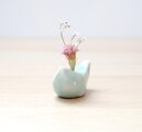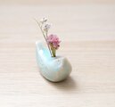 基本的にドライフラワーやアーティフィシャルフラワーなどを入れてお楽しみいただくことを想定しておりますが、もし生花を入れられたい場合には、背中の穴にスポイト等で水を入れていただくか、生花用スポンジを小さく切って穴に詰めるなどの方法をご検討ください。