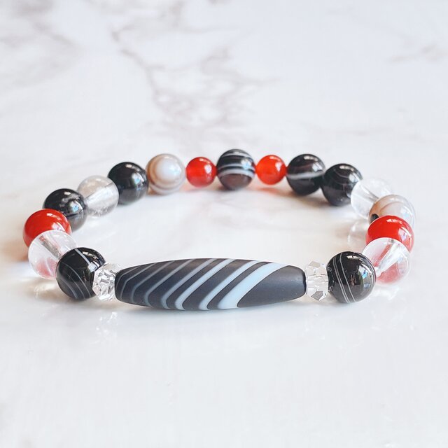 ✦一点限定✦人間関係の流れを変えたい方へ チベット天珠・天眼石・ヒマラヤ水晶・赤瑪瑙 天然石ブレス パワーストーン No.675