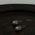 カットが施された7mmほどのパールにレインボームーンストーンを合わせてしっとりした雰囲気を纏ったピアス(イヤリング)を制作しました。
