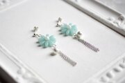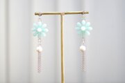 レジンアート お花とコットンパールとフリンジのピアス〈歌声遠く〉
