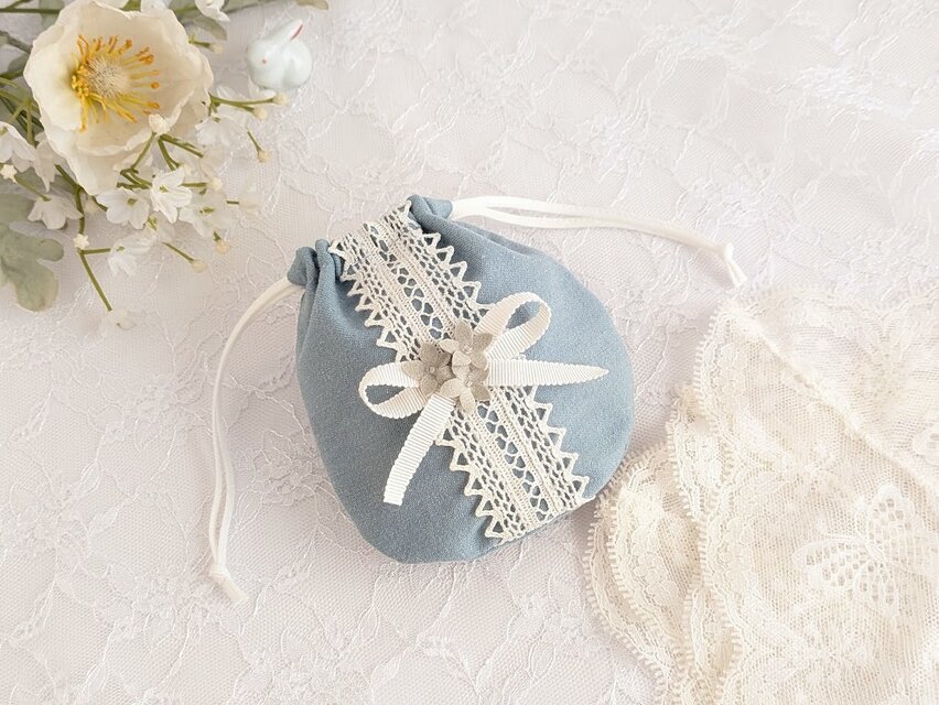 #ソフトデニム #デニム雑貨 #レース #リボン #花 #ブルー #水色 #大人可愛い #上品
