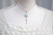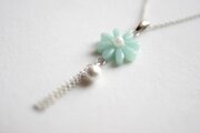 中心の花芯とコットンパールの光沢のある輝きが上品なペンダント。