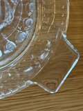 厚みのあるガラスに刻まれたやわらかなドット模様が、光を受けてきらきらと反射し、