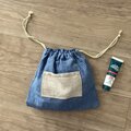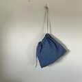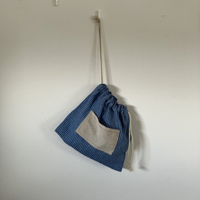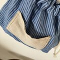 ストライプ模様の生地にベージュを組み合わせて作った巾着袋のご紹介です。