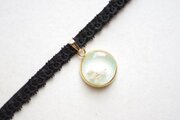 【受注製作】レジンアート ラウンドモチーフとタティングレースとベルベットリボンのチョーカー〈草萌え〉