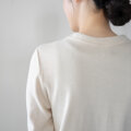 襟ぐりの幅は太めで首が詰まったデザインです。