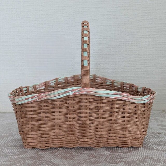 ビスケットカラーをメインに、かごの縁にはグリーンやピンクを取り入れて春らしい雰囲気を演出しました。