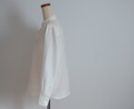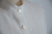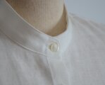 柔らかく滑らかな手触りのフランス産リネンで仕上げたスタンドカラーシャツ
