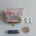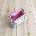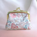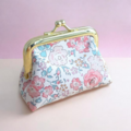 リバティプリントのタナローン生地を使用して製作した、がま口ミニポーチです。