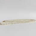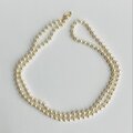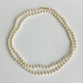 オールノットネックレスの特徴として、万が一糸が切れた場合でも最小限で抑えられる点や、玉同士が密着していないので擦れあいにくく傷も付きにくい点・また首回りにフィットしやすくなっている点等がございます。この仕様は特に海外で人気があり、比較的高品質アクセサリー類によく見られる仕様となっております。※弊社の自社工場にて製造・塗装したパールです。比較的品質の状態も維持されており、大きな剥がれや目立った傷などもございません。稀にピンホールや小さい凹み等が見られる場合がございますが、自社にて検品の上、品質に問題は無く許容範囲とさせて頂いております。