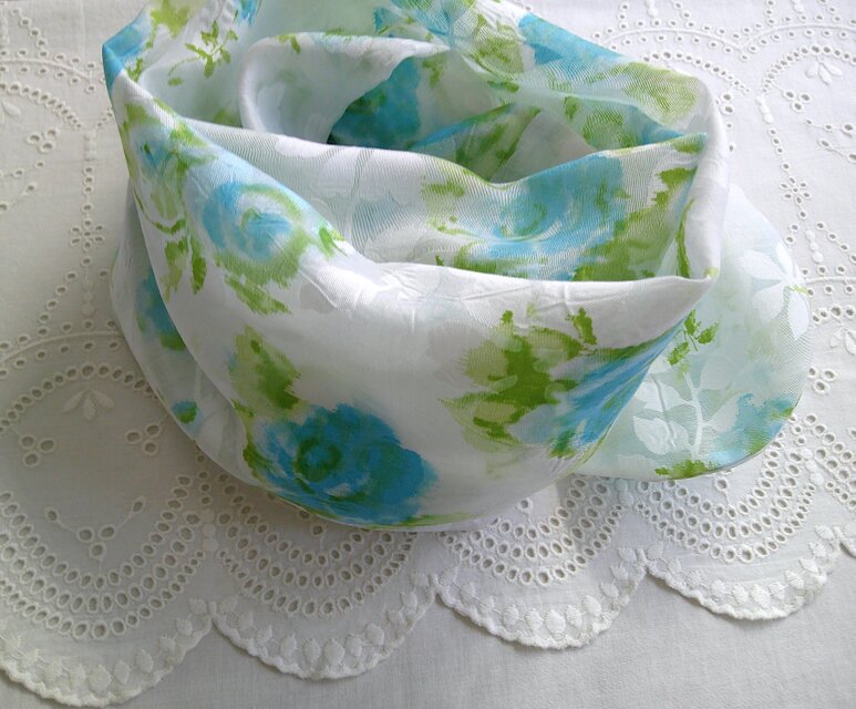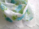薄く柔らかいコットンローンの 肌ざわり は 優しく襟元を 温めてくれそう! 軽くて 小さくなるので バックに 入れて 置いて 何時でも使えるよう出来そう。 プチプレゼント とっても可愛い。