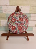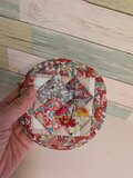 パッチワークトレー オレンジどちらも細かいパッチワークになっていてそれぞれの彩りが素敵です。ボタンを留めるとトレーになるのですから・・・このアイデアが気に入っています。