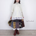 パッチワークの個性が際立つ大人カジュアルな装いに仕上がります。