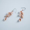 桜の花びらがひらひらと舞い散るイメージでデザインしました。タティングレースのクルニーリーフという技法を用いて丁寧に手のひらの中で織り上げ、更に縫い合わせて花びら一つ一つを仕上げています。春のコーディネートのポイントに。耳元で揺れる可憐な印象のピアスです。
